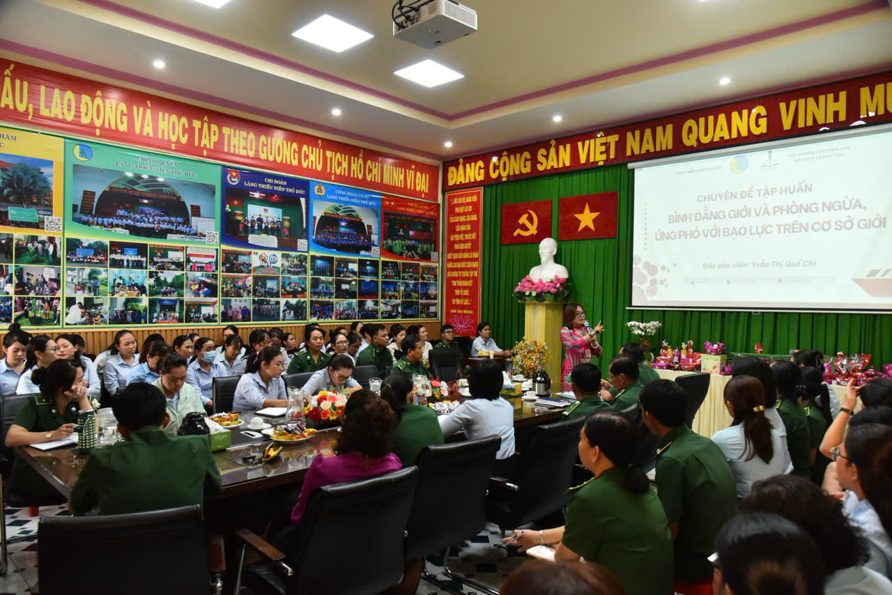 Hưởng ứng Ngày Quốc tế Phụ nữ 8/3, Viện Nghiên cứu Khoa học Giáo dục và Đào tạo phối hợp với Làng Thiếu niên Thủ Đức tổ chức chuyên đề “Bình đẳng giới và phòng ngừa, ứng phó với bạo lực trên cơ sở giới” dành cho cán bộ, viên chức của đơn vị. Hoạt động nhằm nâng cao nhận thức về bình đẳng giới, đồng thời góp phần xây dựng môi trường chăm sóc, giáo dục trẻ em an toàn và tôn trọng.Chuyên đề do Bà Trần Thị Quế Chi – Phó Viện trưởng Viện Nghiên cứu Khoa học Giáo dục và Đào tạo báo cáo trực tiếp. Thông qua những nội dung chia sẻ thiết thực, chương trình đã giúp đội ngũ cán bộ, nhân viên hiểu rõ hơn về các khái niệm giới, nhận diện các hình thức bạo lực trên cơ sở giới và tăng cường kỹ năng phòng ngừa, ứng phó trong quá trình chăm sóc, giáo dục trẻ.